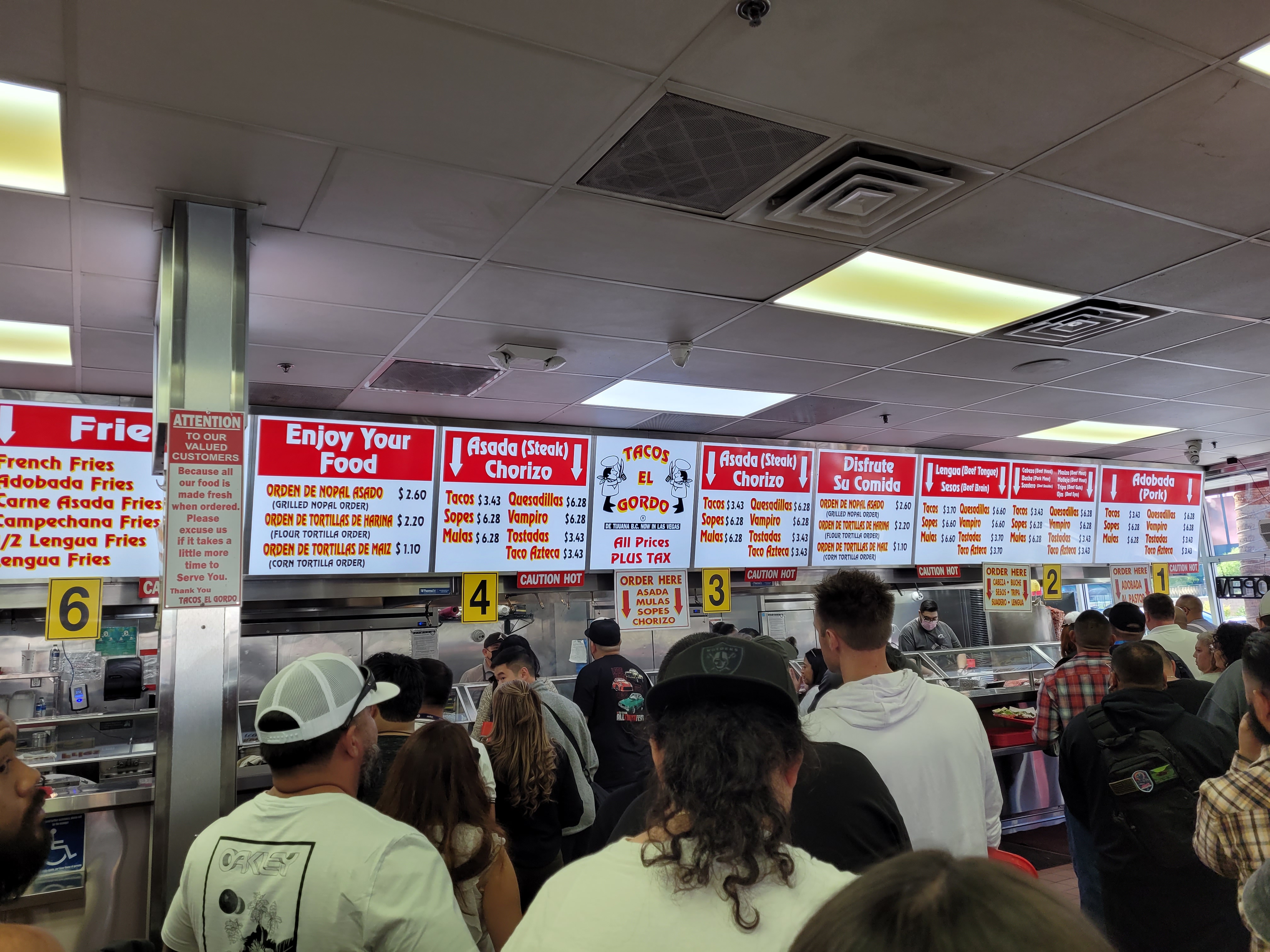 주문 방식도 일반 가게와 다르게 줄이 3개로 각각 타코에 들어가는 고기 ( 돼지, 소, 소 내장) 이렇게 3줄로 줄을 서서 직원에게 원하는 타코를 주문하고 타코를 받아서 마지막 정산을 하는 방식을 이용한다. 점심시간에 잘못가면 줄이 가게 밖에서 설 정도로 사람이 엄청 많고 자리가 없어서 밖에서 먹는 사람도 생길 수 있다.