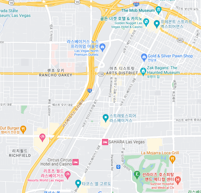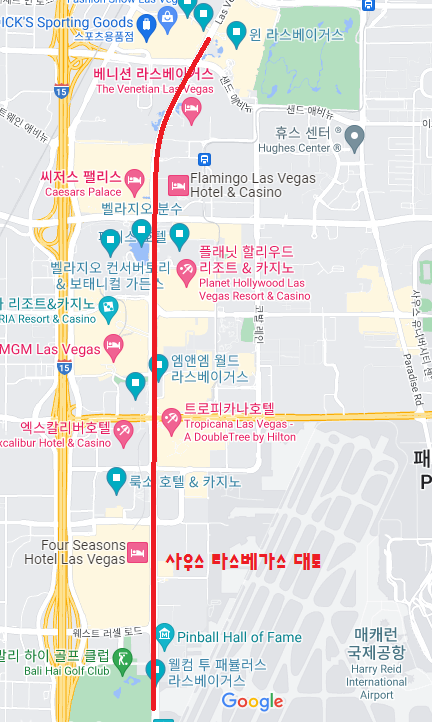 라스베가스에서 생각하는 거의 대부분의 관광지는 전부 사우스 라스베가스대로 (Las Vegas Boulevard S)에 모여 있기 때문에 그냥 길 헤매는 것 없이 이 길을 따라 쭉 다니면 된다.